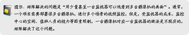 早期的DVR主要是进行数字化视频存储,在网络传输、软件应用、虚拟矩阵等方面的功能并不十分完善,因此在实际项目应用中,通常DVR与模拟矩阵配合使用,系统的控制和切换仍然由矩阵完成,而DVR仅仅代替了磁带录像机,实现对视频的数字化录像。硬盘录像机经过不断发展、升级,在网络支持、虚拟矩阵、软件应用等功能上逐步得到加强,在一些项目中,可以以DVR为系统核心设备,以网络为支撑,实现视频监控系统的虚拟矩阵切换、存储、控制、管理等功能,在此情况下模拟矩阵不再是必需的。